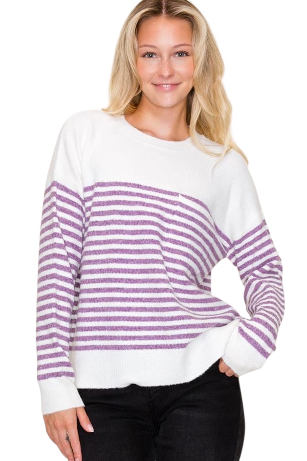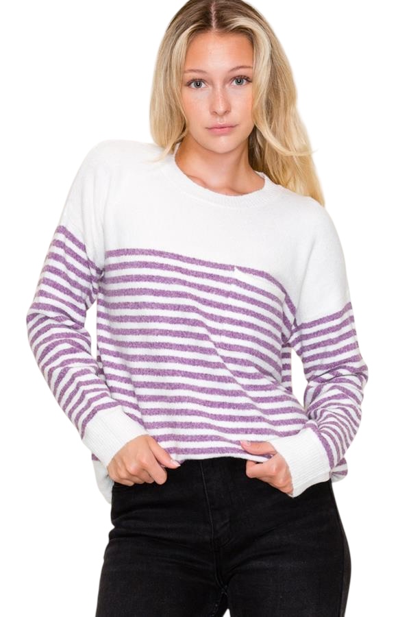 STACCATO LONG SLEEVE SUPER SOFT STRIPED SWEATER