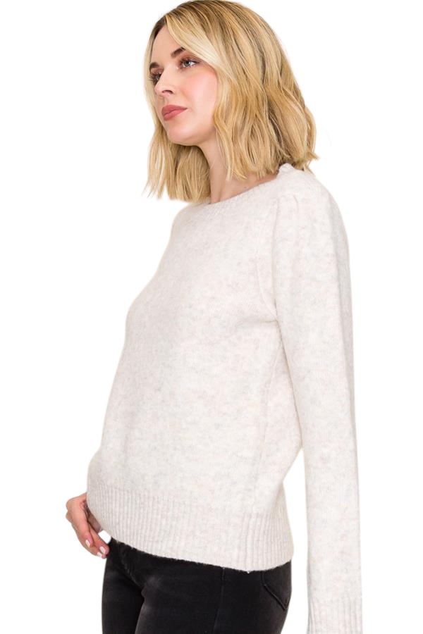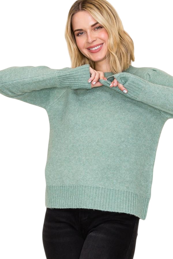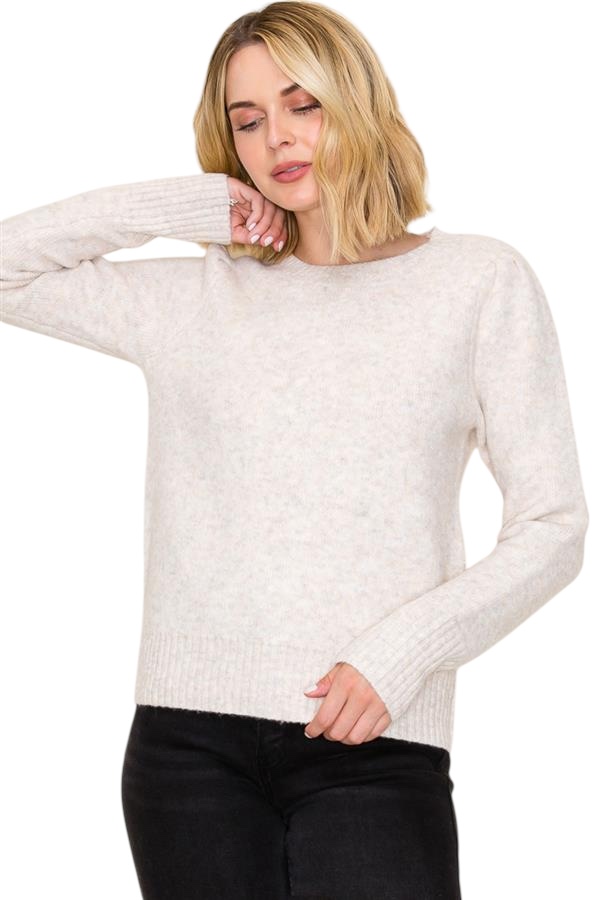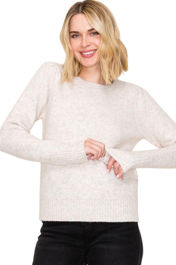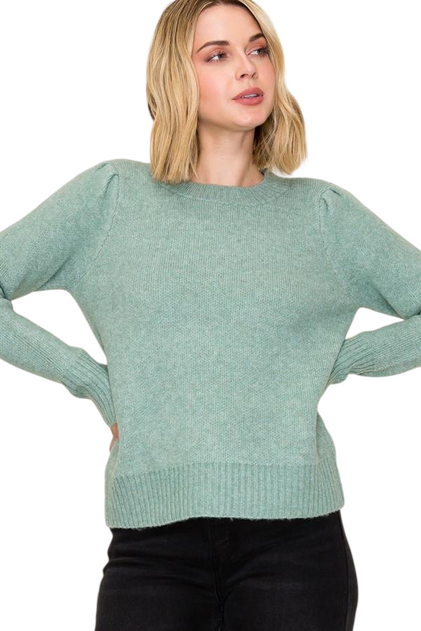 / STACCATO PUFF SLEEVE CREWNECK SWEATER