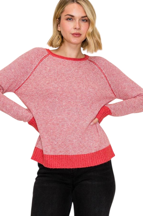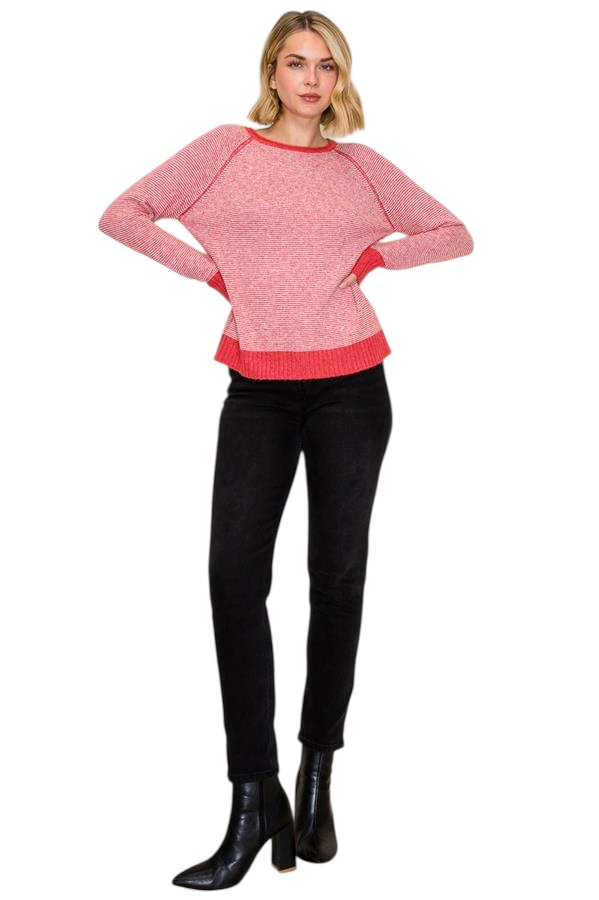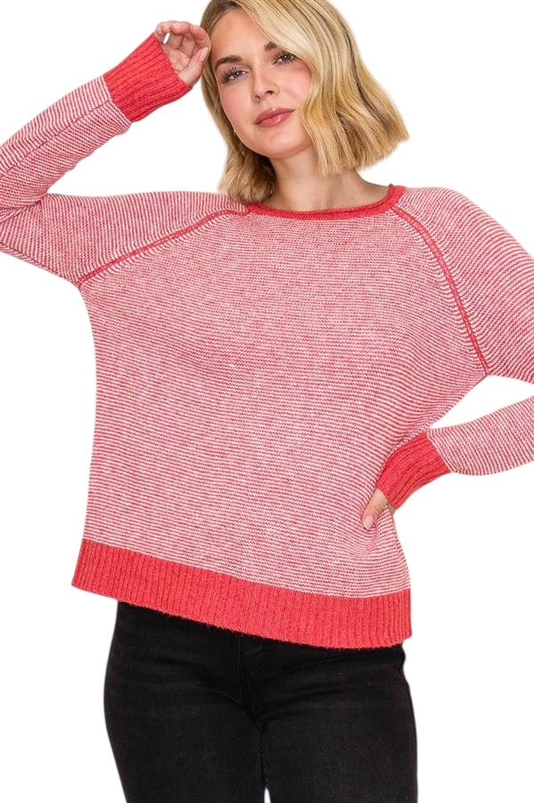 STACCATO RAGLAN SLEEVE PINSTRIPE SWEATER