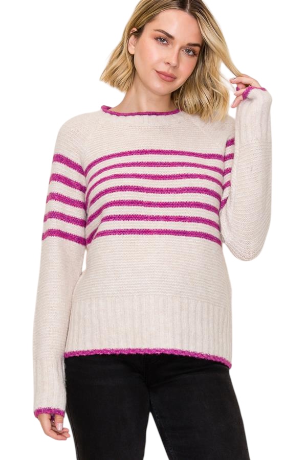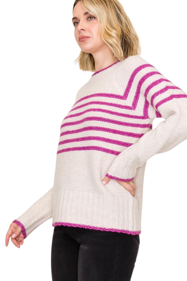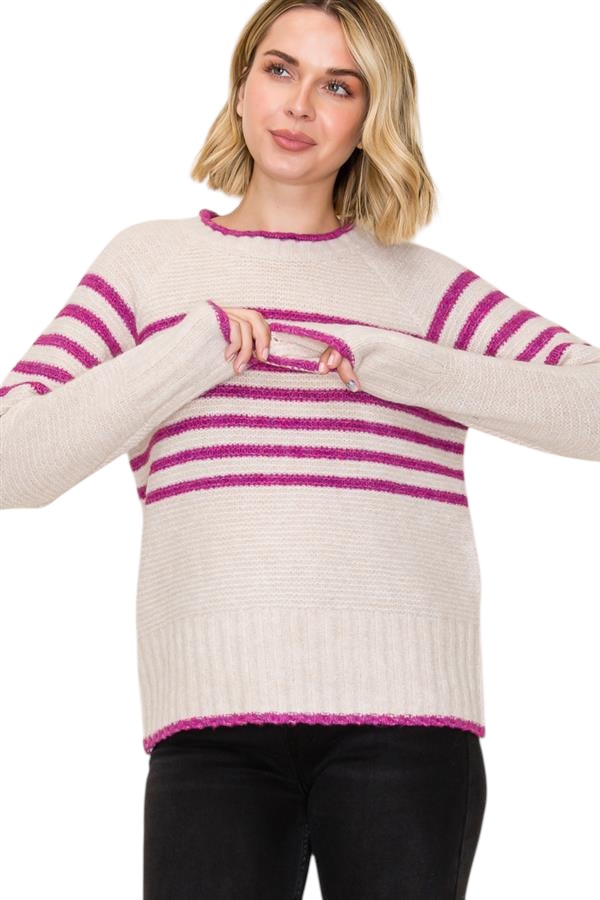 / STACCATO RAGLAN SLEEVE STRIPE SWEATER