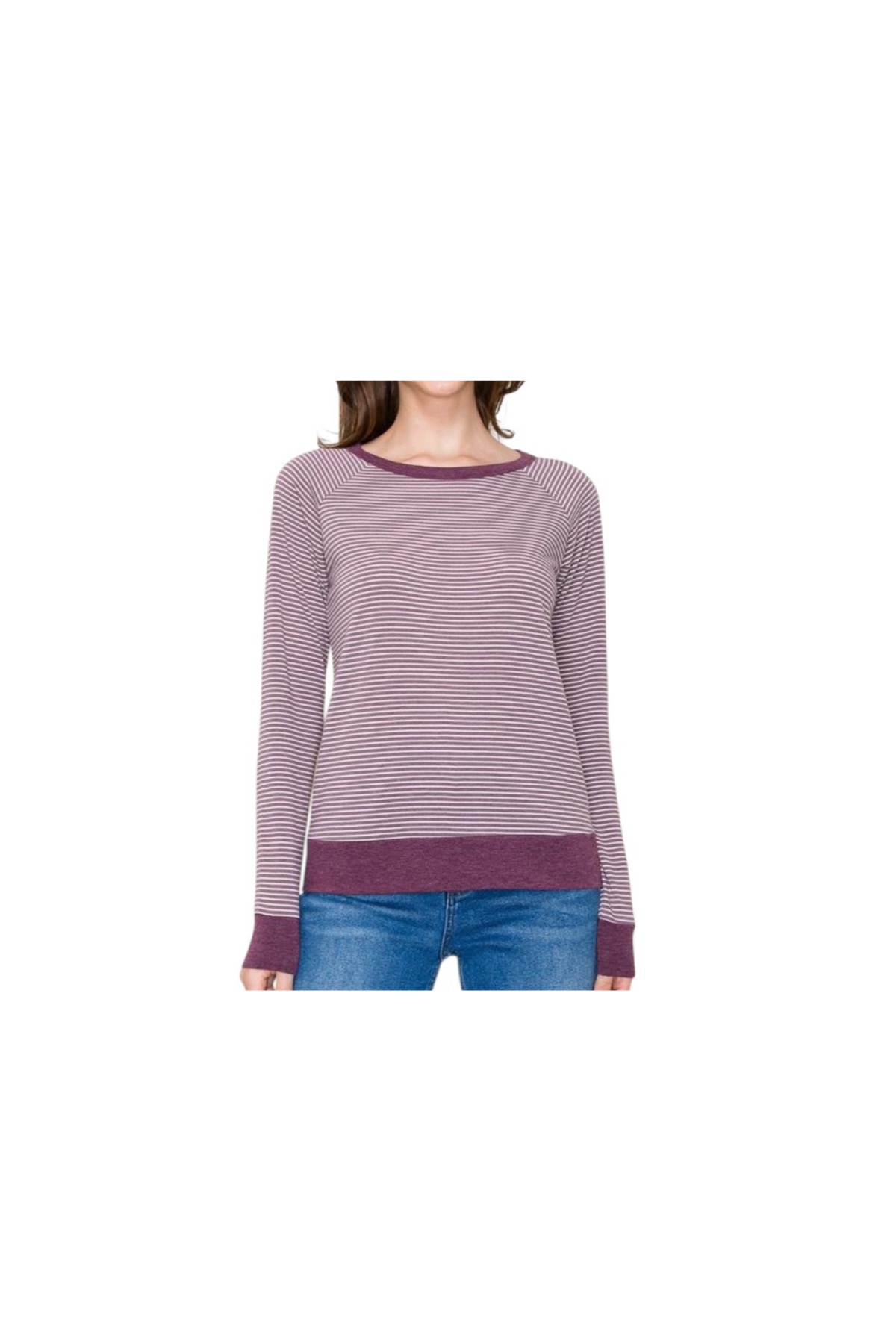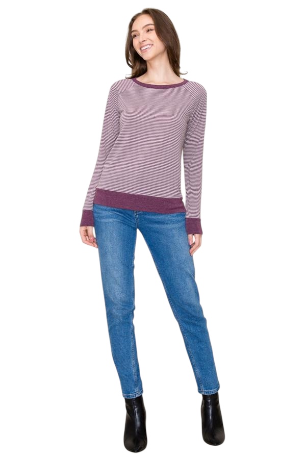 STACCATO RAGLAN SLEEVE STRIPED KNIT TOP quantity