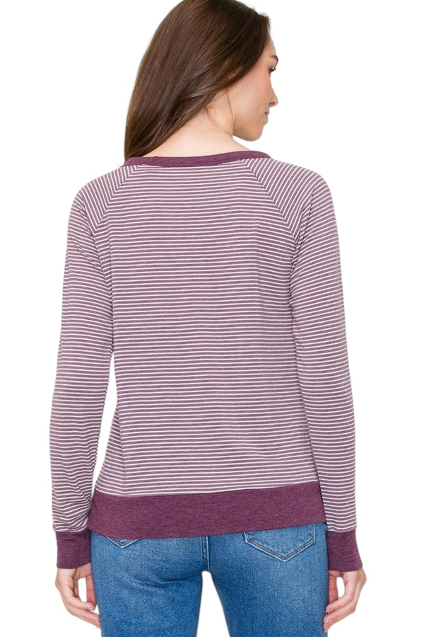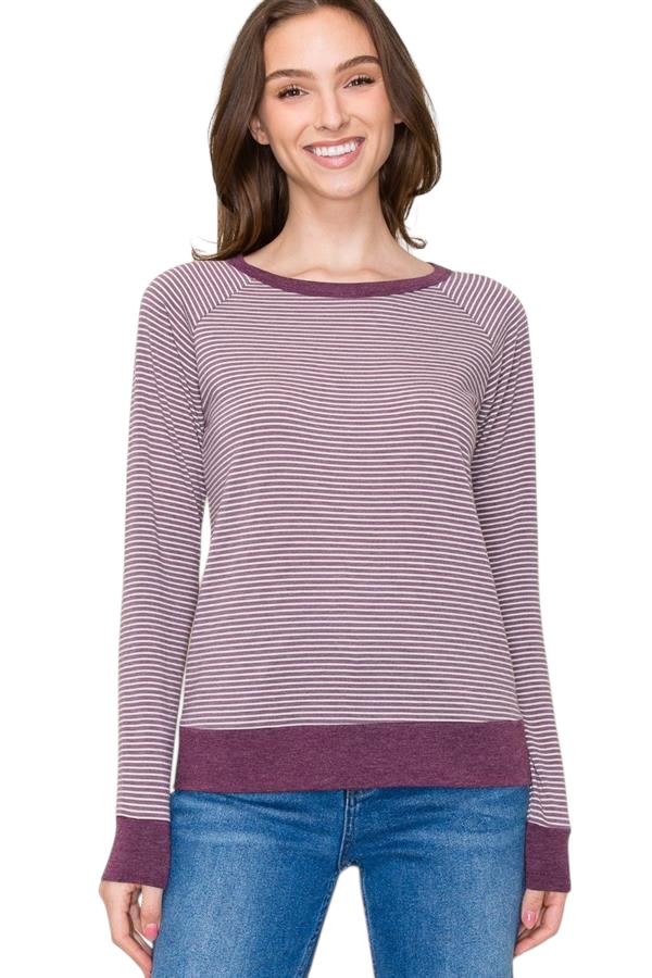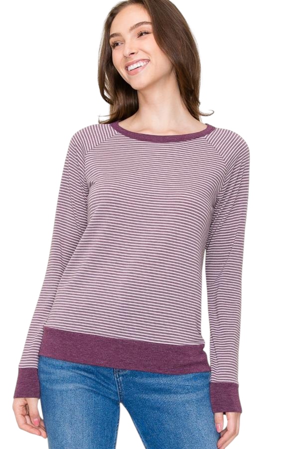 STACCATO RAGLAN SLEEVE STRIPED KNIT TOP