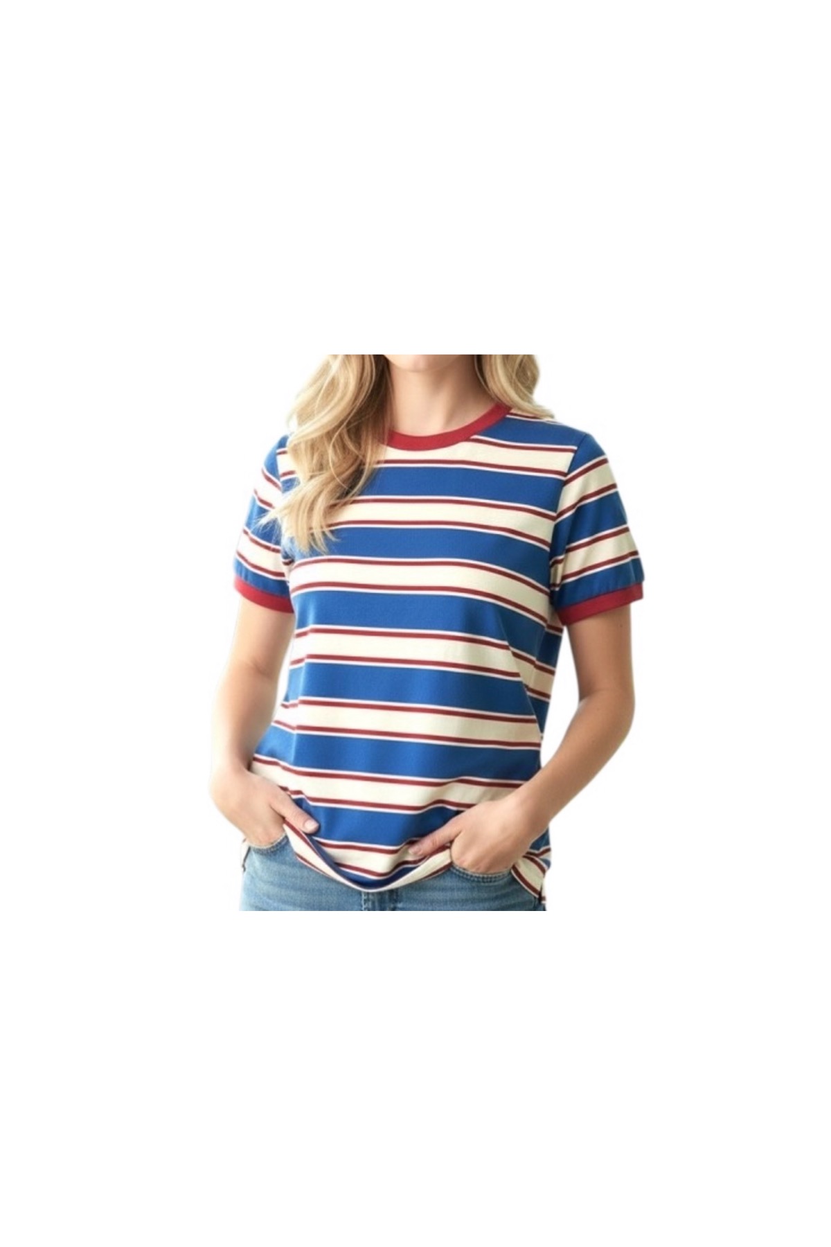 STACCATO SHORT SLEEVE STRIPED CREWNECK TOP quantity