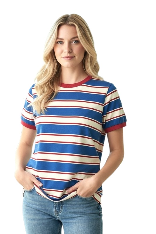 STACCATO SHORT SLEEVE STRIPED CREWNECK TOP