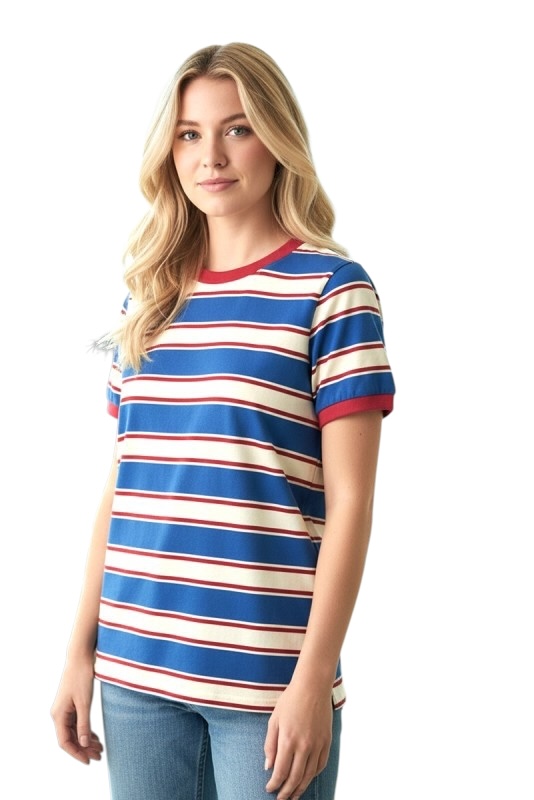 STACCATO SHORT SLEEVE STRIPED JERSEY TOP
