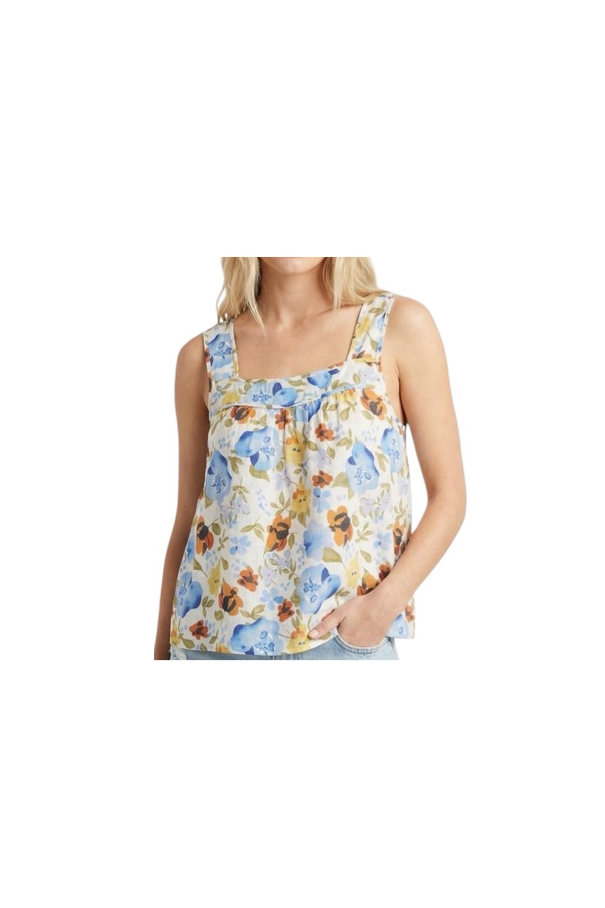STACCATO SQUARE NECK WIDE STRAP FLORAL TANK