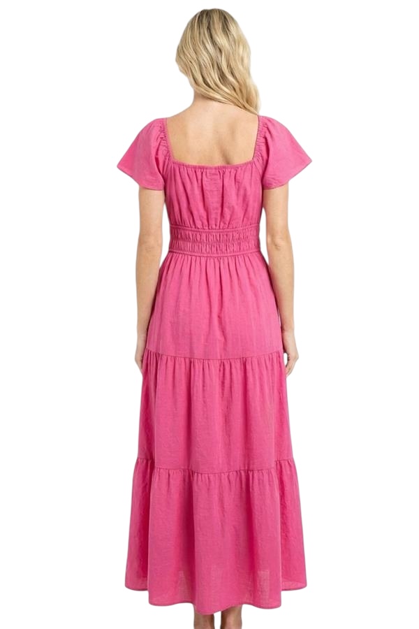 / STACCATO V-NECK FLUTTER SLEEVE TIERED MAXI DRESS