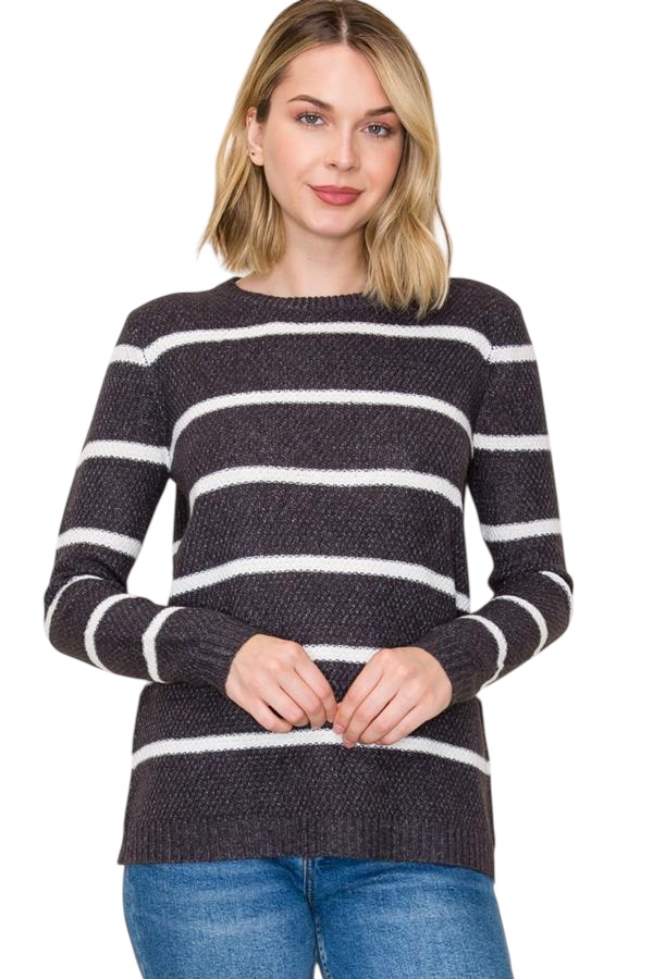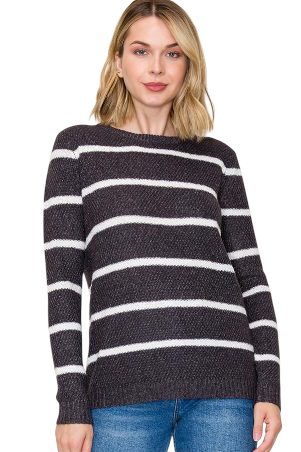 STACCATO CREW NECK STRIPED LONG SLEEVE SWEATER