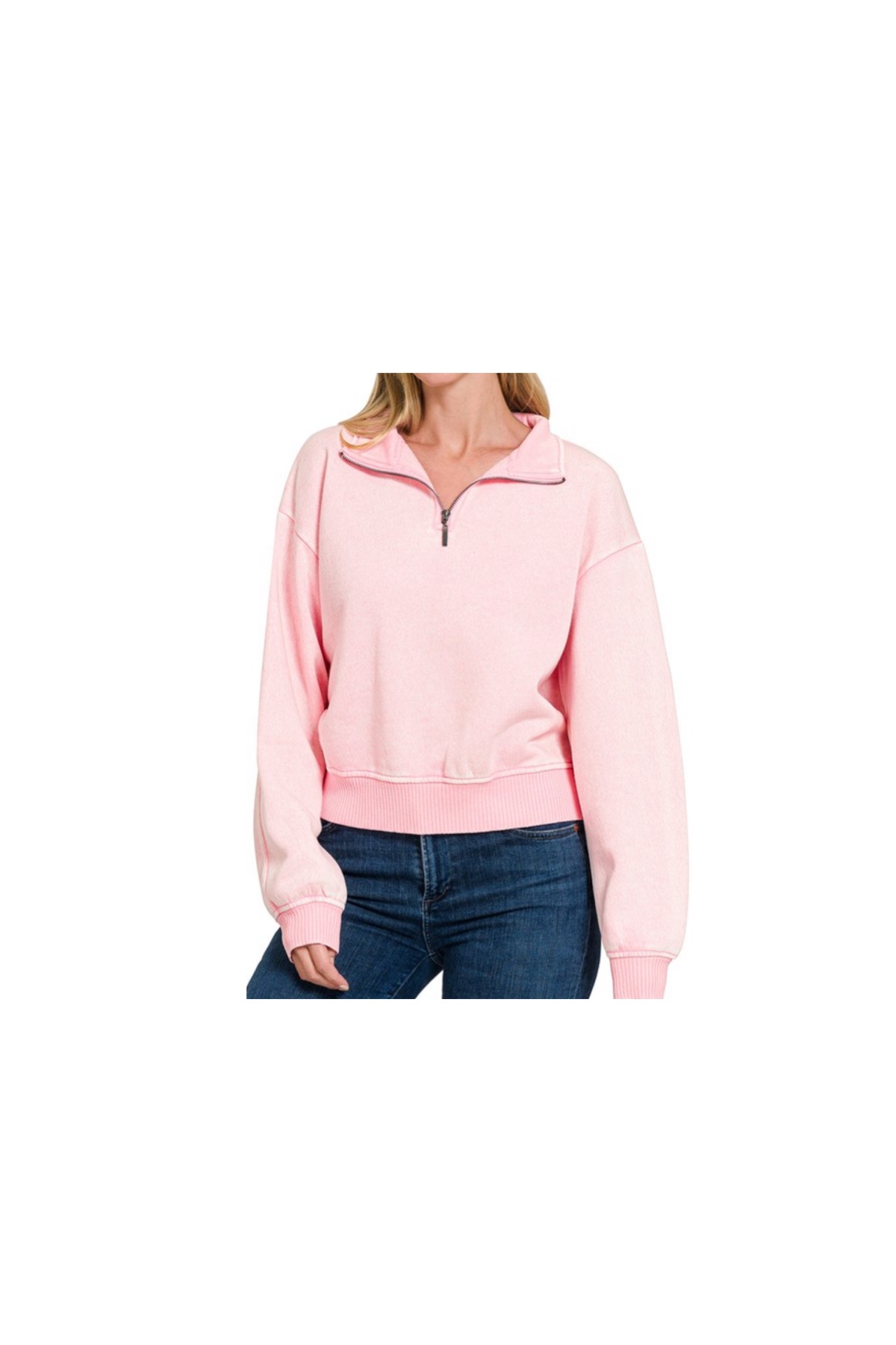 ZENANA ACID WASH FLEECE HALF ZIP quantity